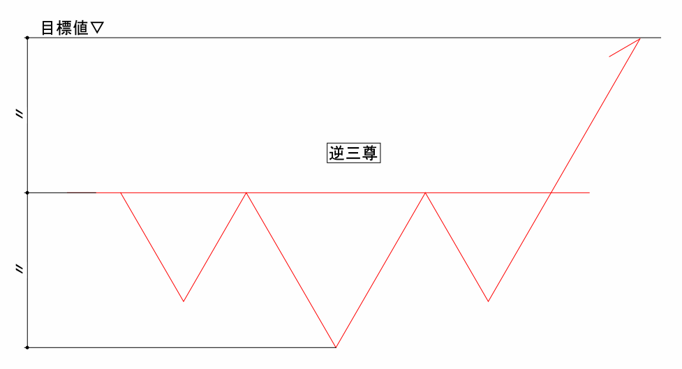 ネックラインから一番深い底までの値幅と同じくらいの幅上昇すると言われています