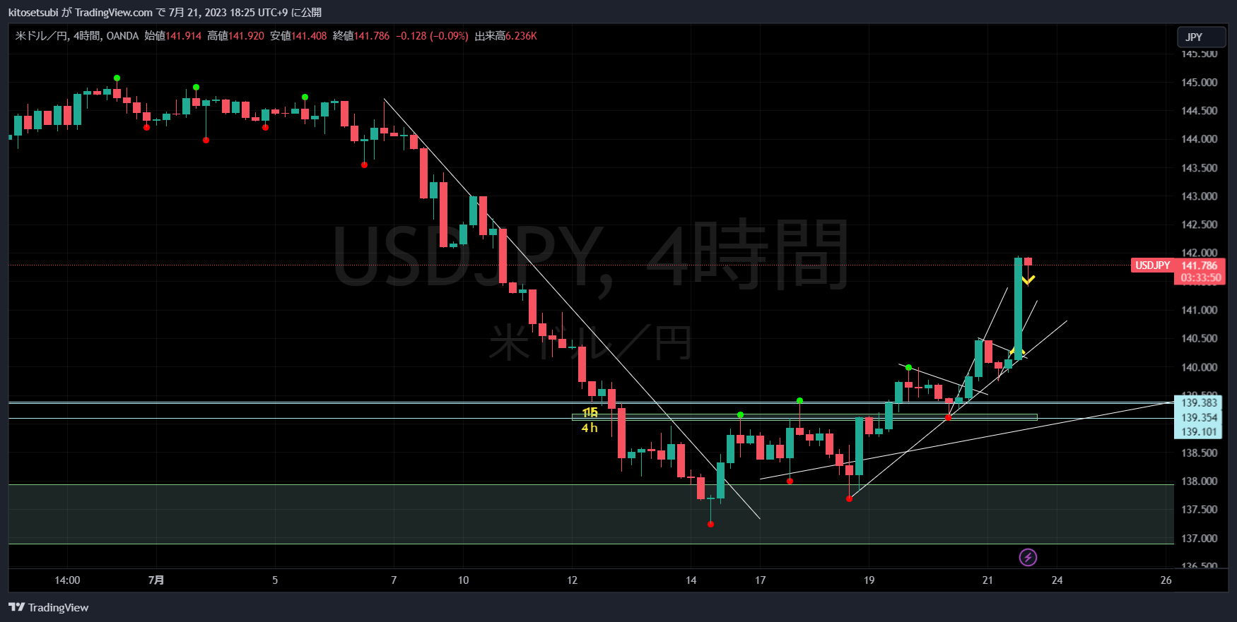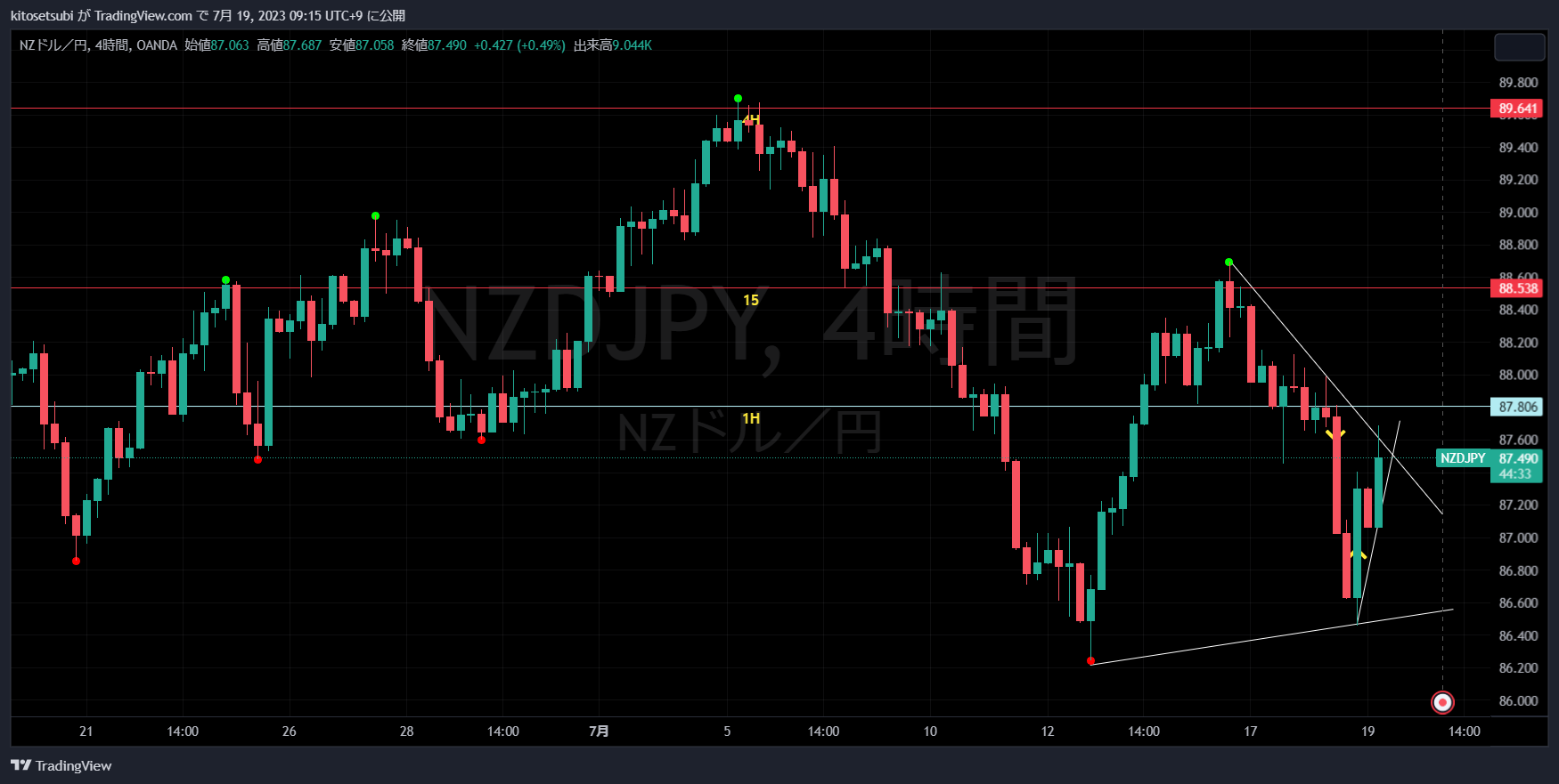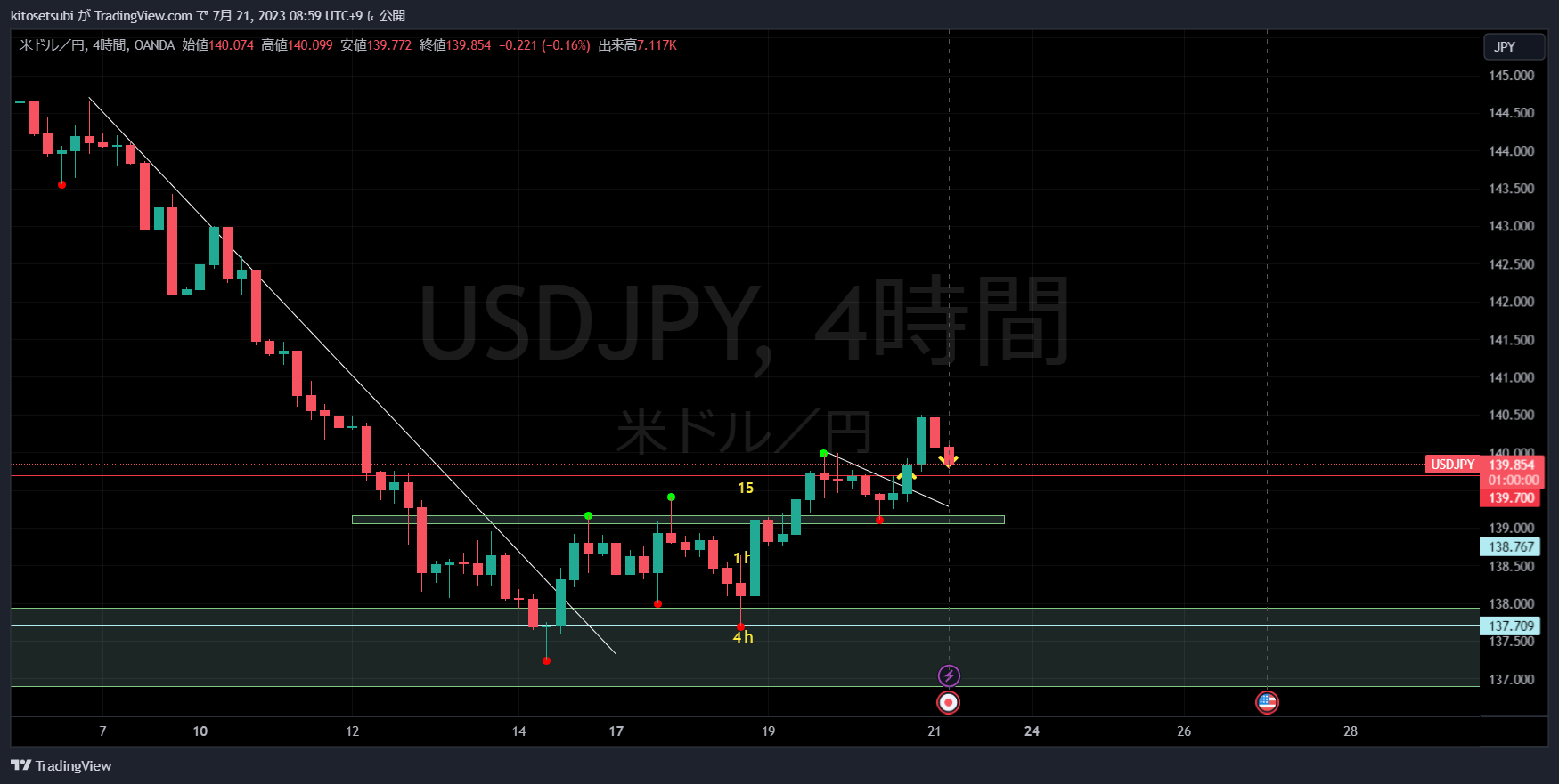 先ほど日足で見た通り日足では三尊の右肩になる可能性があるので早めに決済しました