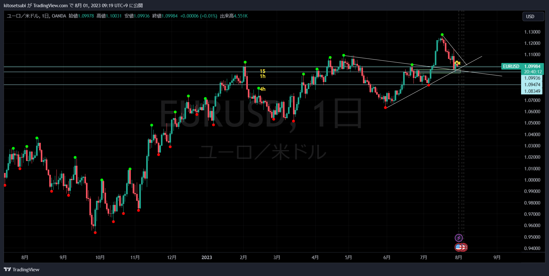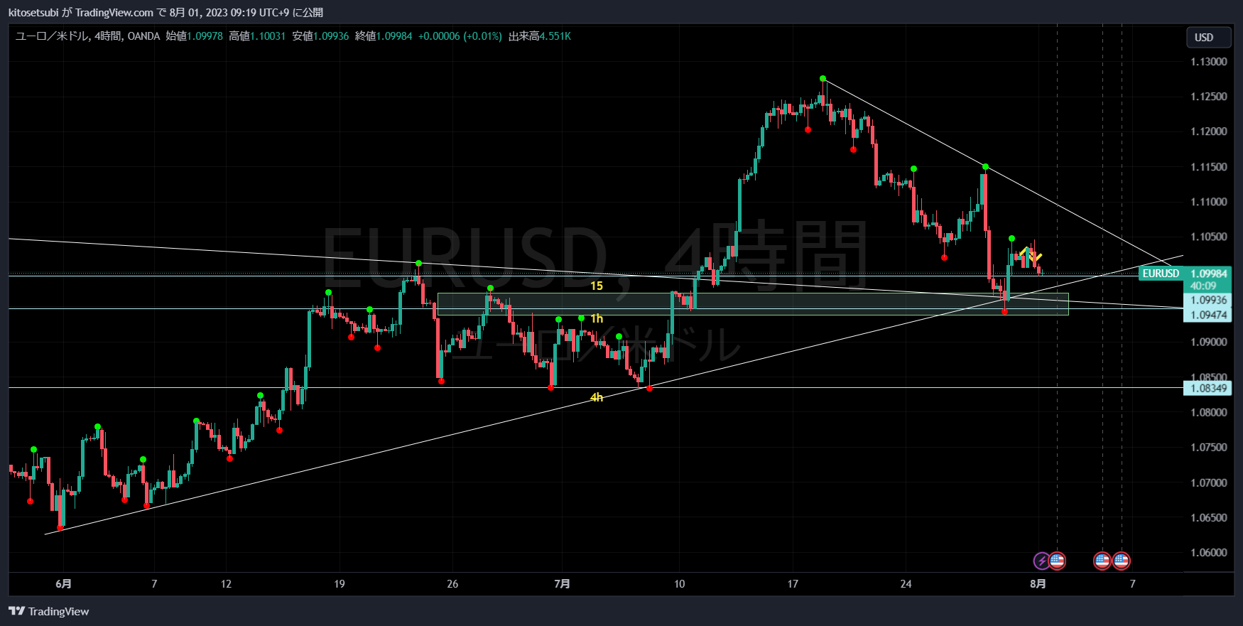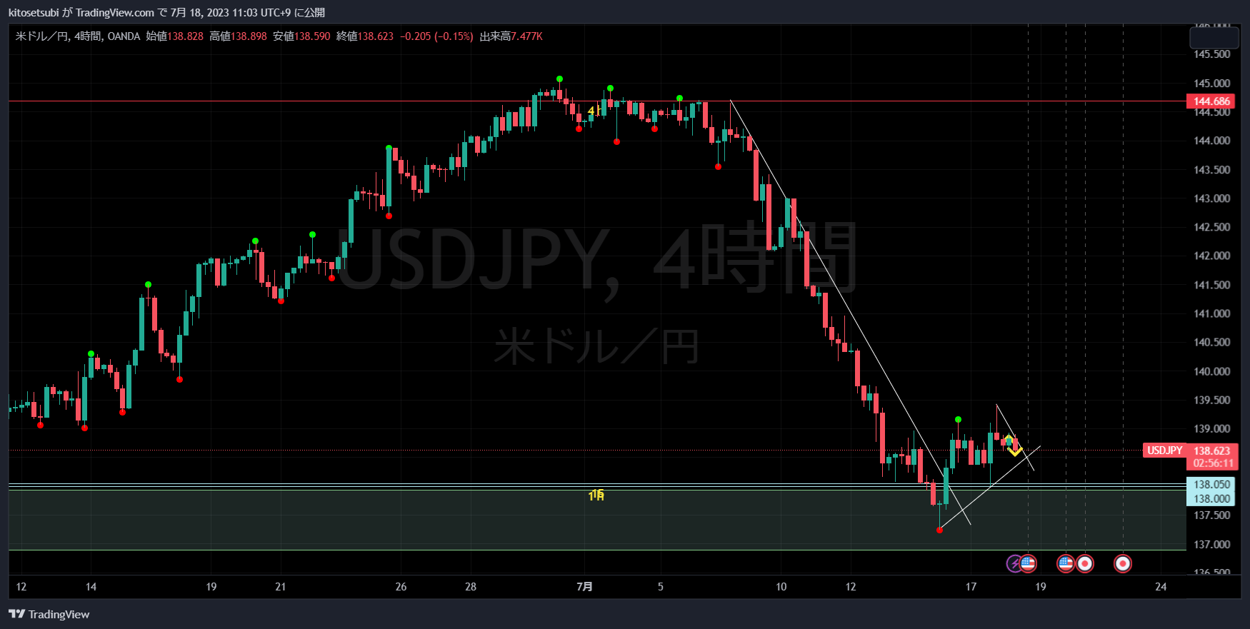 先ほど日足で見た通り日足では三尊の右肩になる可能性があるので早めに決済しました