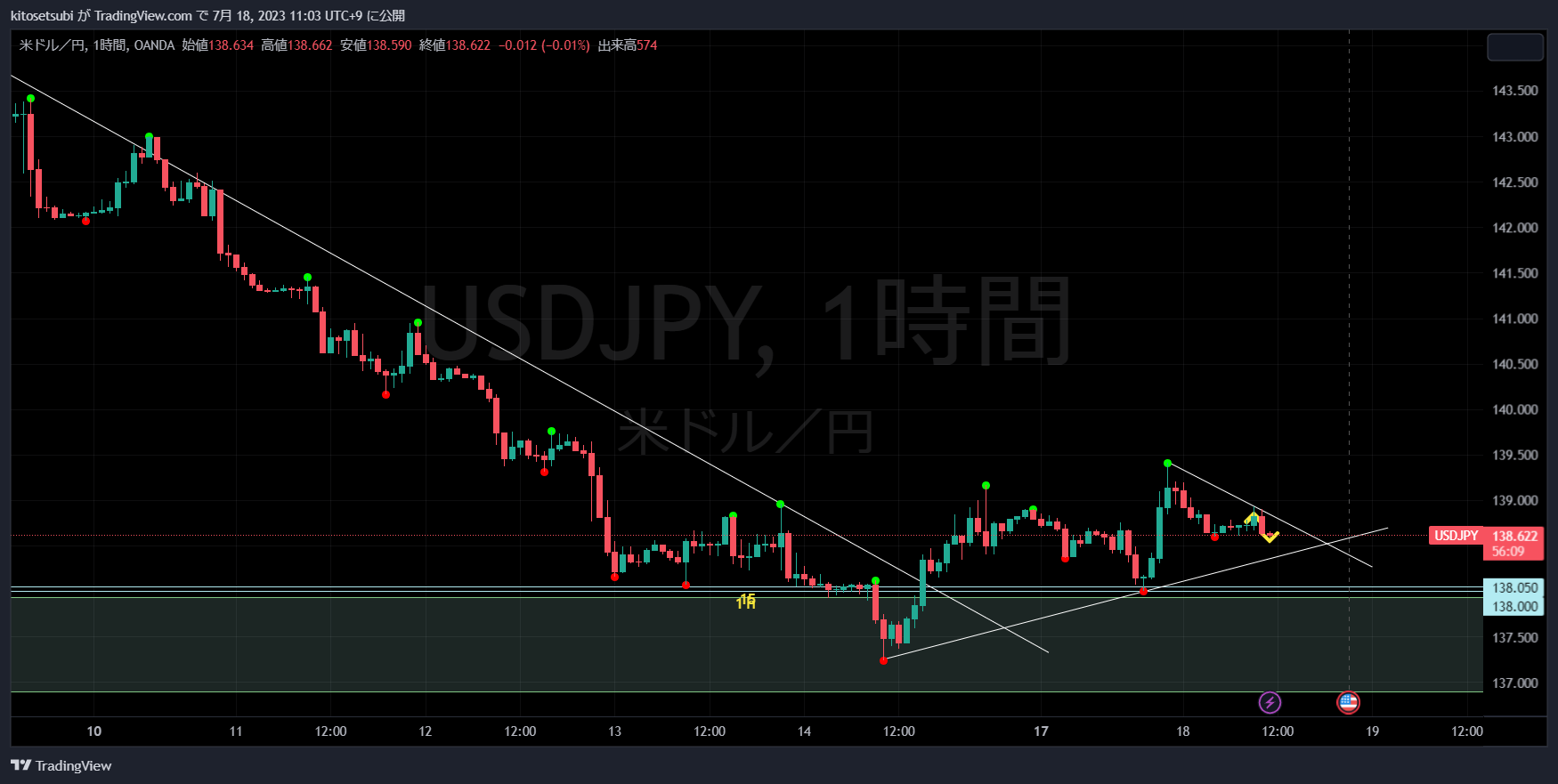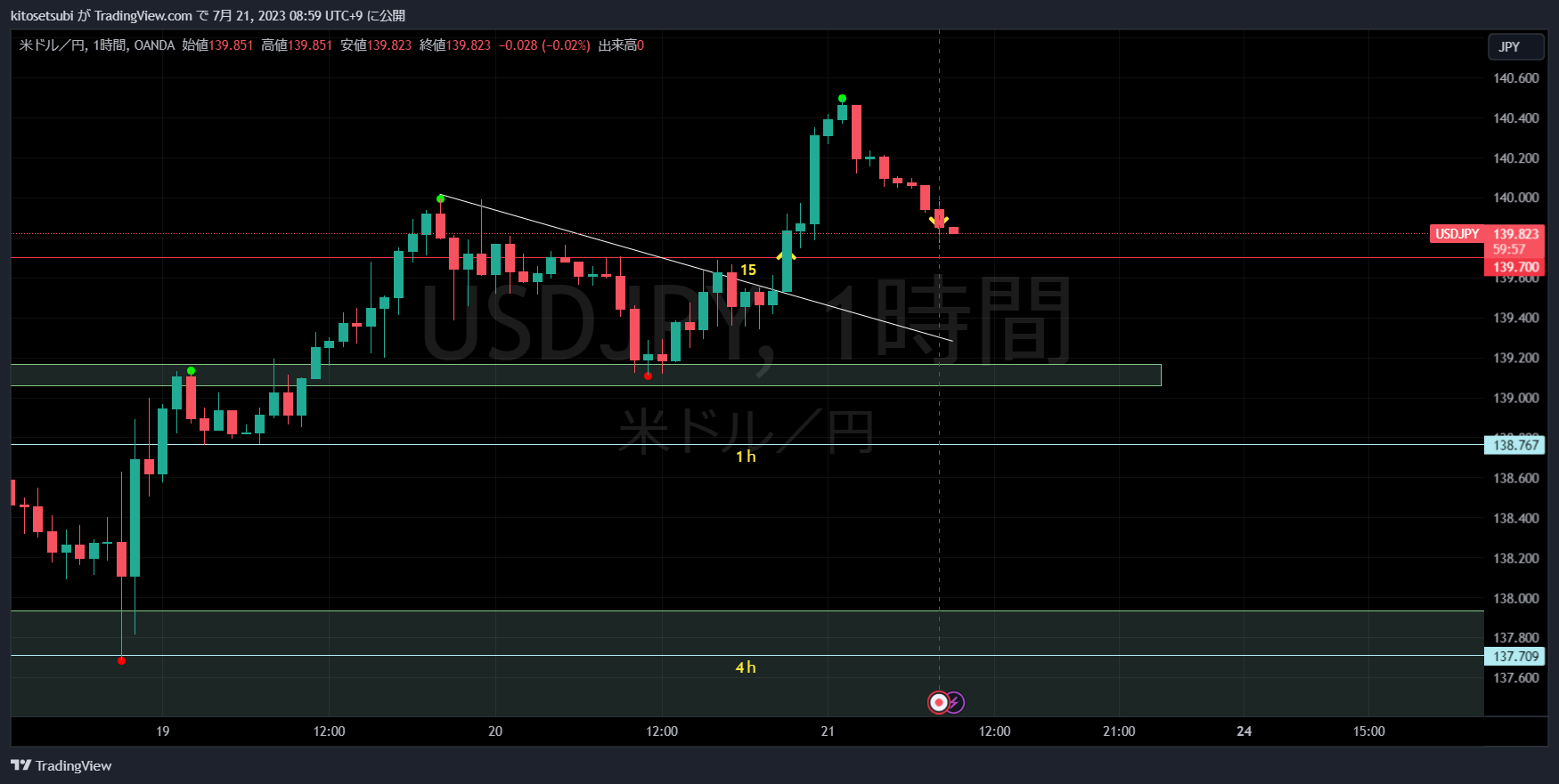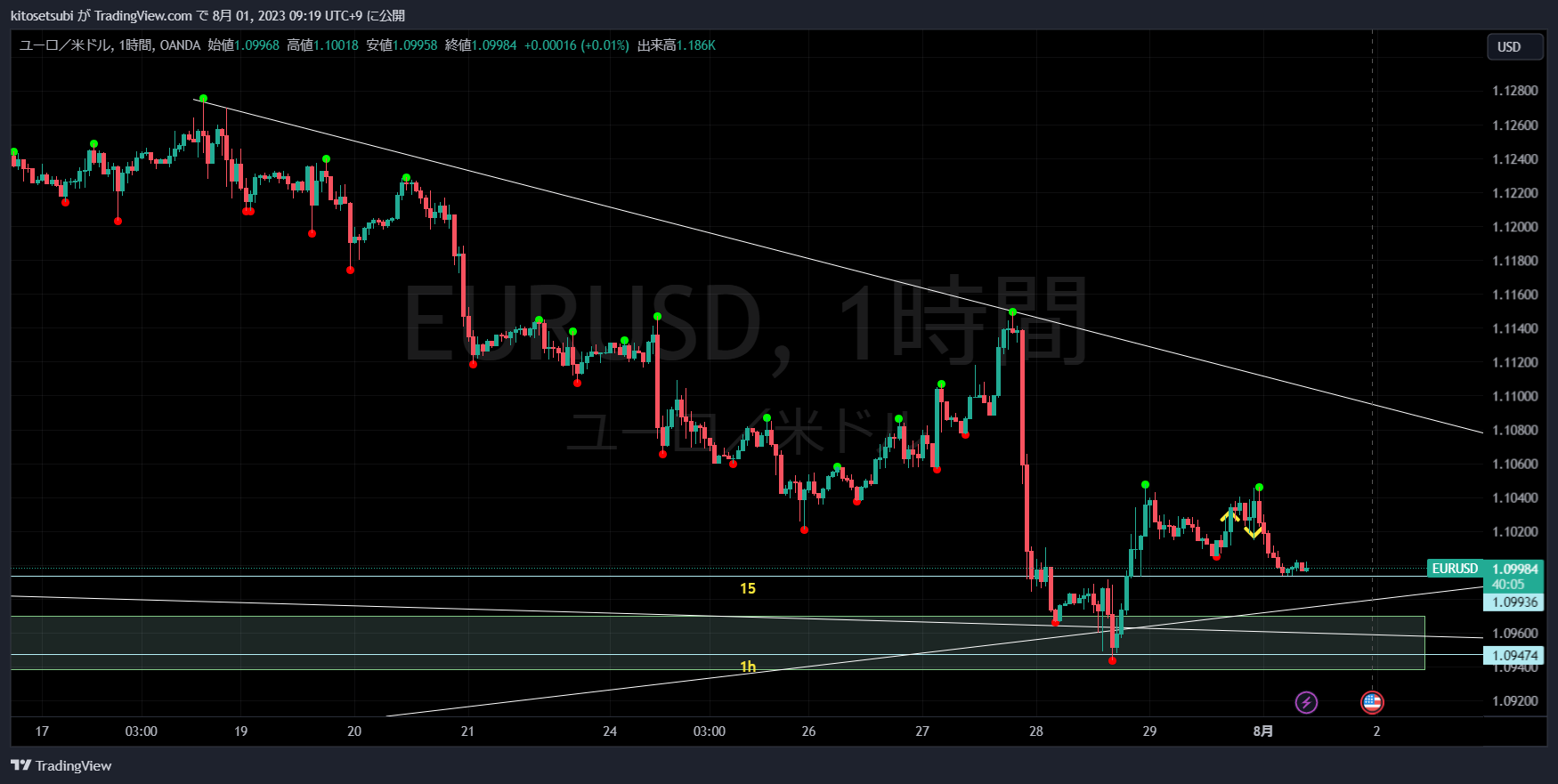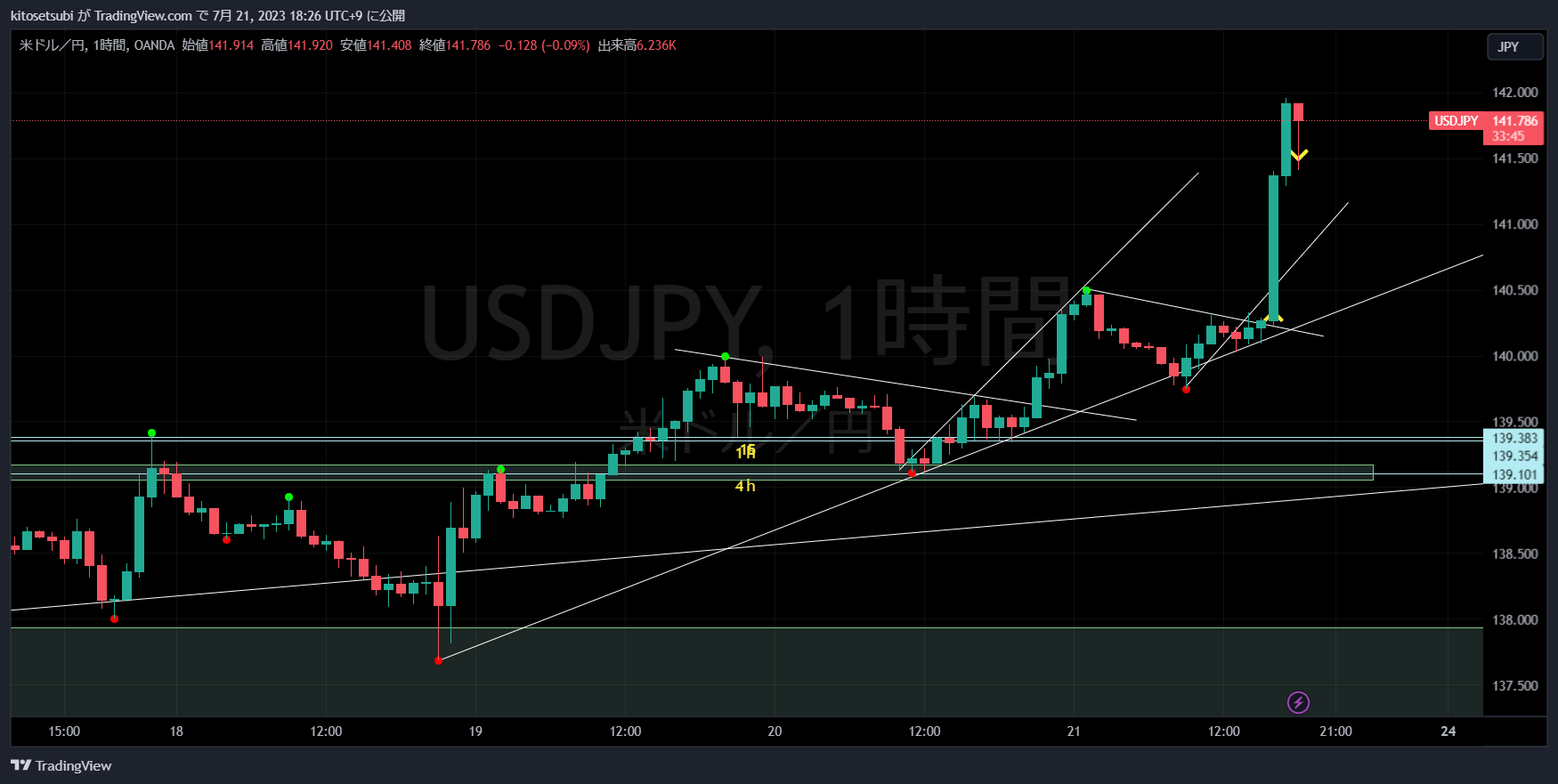 1時間でのネックラインでエントリーをしているのでレートが見にくい時は上位足を見るようにしてください