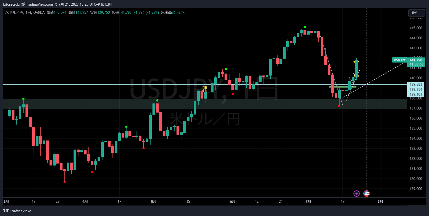 日足では全戻ししているが週足レベルのサポートライン付近だったので