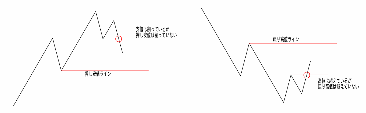 押し安値を割ったら初めて下落トレンドへの転換となります